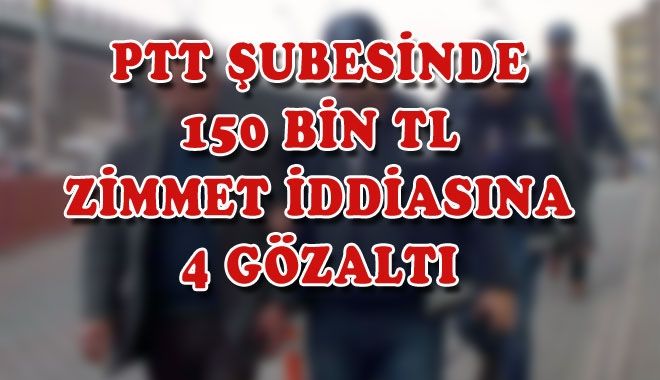 Kayseri Adliyesi´nde bulunan PTT şubesinde usulsüzlük yaparak kamuyu 150 bin TL zarara uğratan 4 kişi zimmet iddiasıyla gözaltına alındı.