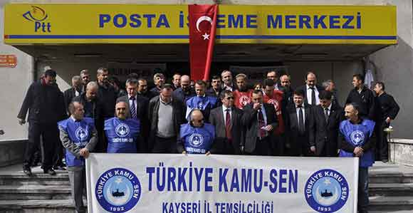 PTT çalışanları PTT'nin A,Ş. Olmasını istemiyor. Bu nedenle Posta İşlem Merkezi önünde toplanan sendika temsilcileri basın açıklaması yaptı. Türkiye'nin en köklü kurumularından biri olan PTT'yi yok ekmik amacıya TBMM'de görüşmeler yapılıyor diyen Bağımsız Haber-Sen Genel Merkez yöneticisi ve Teşkilatlandırma Genel Sekreteri Erdoğan Aslan, bir günlük iş bırakma kararı aldıklarını açıkladı.
