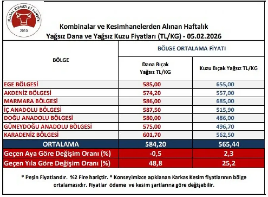 Açıklanan rapora göre, Türkiye genelinde dana karkas kesim fiyatları artış trendine girdi. Özellikle İç Anadolu Bölgesi’nde fiyat artışı dikkat çekti. Geçtiğimiz hafta 587,50 TL olan yağsız dana karkas kesim fiyatı, 25 TL’lik artışla 612,50 TL’ye çıktı. Ramazan öncesi talebin artmasıyla birlikte fiyatların seyrinin nasıl olacağı merak konusu oldu.