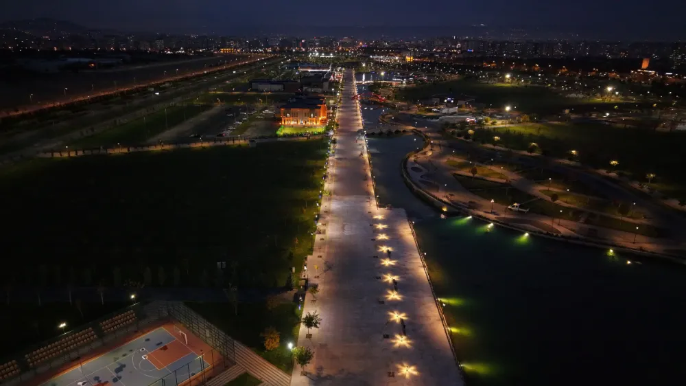 Büyükşehir Belediyesinden yapılan yazılı açıklamaya göre, millet bahçesindeki 1,5 kilometrelik iskele yolu LED ışıklarla donatıldı.
