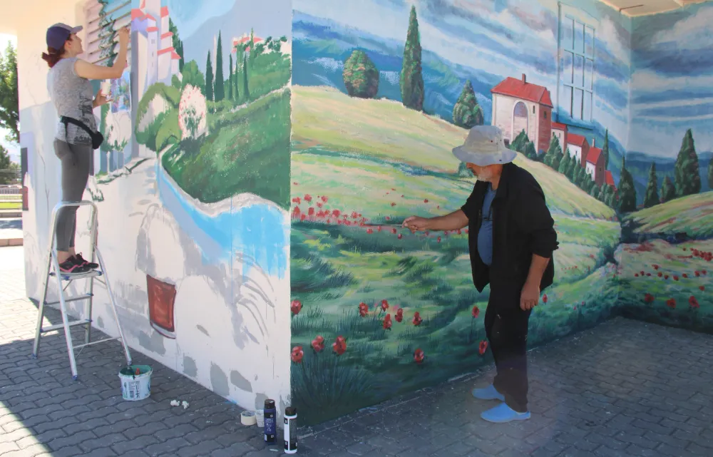 Kayseri'de emekli resim öğretmeni Hasan Gürpınar ve ressam kızı, elektrik panolarını boyayarak tablo haline dönüştürüyor.