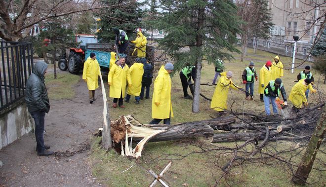 Kentte dün akşam saatlerinden itibaren etkili olan şiddetli rüzgar, ERÜ içerisinde onlarca ağacı yerinden söktü. Ayrıca rüzgar nedeniyle Kadir Has Kongre Merkezi´nin de çatısı uçtu. Çatının uçmasının ardından görevliler, çatıyı onarmak için çalışmalara başladı.