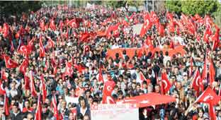 Türkiye Harp Malulü Gaziler Şehit Dul ve Yetimleri Derneği ve Sivil Toplum Kuruluşlarınca tertiplenen yürüyüşe onbinlerce kişi ellerindeki Türk bayrakları ile katıldı. Cumhuriyet meydanında toplanan gurup burada teröre sert bir dille tepkilerini göstererek Kahrolsun PKK sloganları attılar. Vatandaşlar terör örgütü PKK’ya yönelik tepkilerini ellerindeki bayraklarıyla göstererek Kartal şehitliğine doğru yürüdüler.Kartal şehitliğinde ilk olarak şehitler için Kuran-ı Kerim okunarak saygı duruşunda bulundu ardından İstiklal Marşı okundu.Kartal şehitliğinde bir konuşma yapan Türkiye Harp Malulü Gaziler Şehit Dul ve Yetimleri Derneği Başkanı Ali Yavuz, teröre sert bir dille tepkisini dile getirdi. Yavuz, “Bu ülkenin dili Türkçe’dir. Bayrağı Al- Yıldızlı al bayraktır. Başkenti Ankara’dır. Bunu kimsenin değiştirmeye gücü yetmez” dedi. Yavuz şöyle devam etti. “İdam cezası tekrar getirilmelidir. Atatürk ve TSK düşmanlığına hiçbir şekilde fırsat verilmemelidir. Ülkemizde çeşitli sıfatlarla görev yapan ajanlar hemen sınır dışı edilmelidir. Türkiye devleti ve milletiyle bölünmez bir bütündür. Bu gerçekleri değiştirmeye kimsenin gücü yetmeyecektir” diye konuştu. Konuşmaların ardından şehitler için dualar edildi. Vatandaşlar daha sonra Kartal şehit mezarlığını ziyaret ettiler. Kayseri’de yapılan teröre lanet birliğe davet yürüyüşü sonrası vatandaşlar olaysız bir şekilde dağıldı.