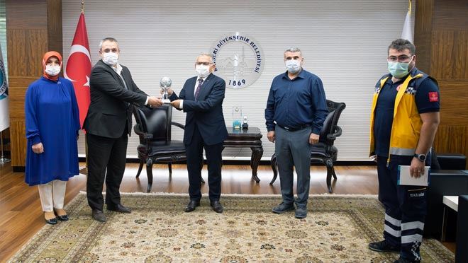 Kayseri Büyükşehir Belediye Başkanı Dr. Memduh Büyükkılıç, Sağlık-Sen Kayseri Şube Başkanı Hakan Kevser ve yönetim kurulu üyelerinin ziyaretinde, koronavirüs salgını sürecinde sağlık çalışanlarına mazeret üretmeden her konuda destek verdiklerini ve onların yükünü hafifletmek için gayret gösterdiklerini belirtti.