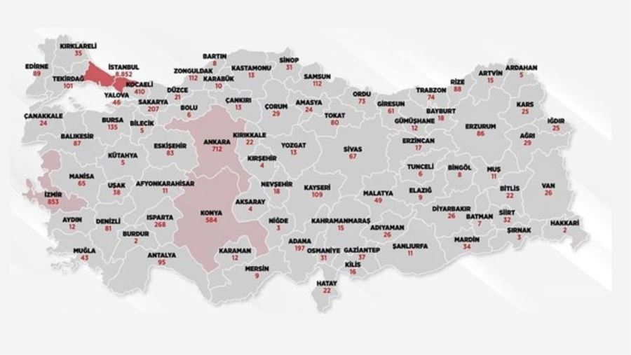 Sağlık Bakanı Fahrettin Koca, Koronavirüs Bilim Kurulu Toplantısının ardından ülke genelinde covid-19 vaka sayılarını il bazında ilk kez açıklandı. Bakan Koca’nın açıkladığı verilere göre ülkemizde en çok vaka 8852 ile İstanbul’da görülürken ilimizdeki vaka sayısı 109 olarak kayıtlara geçti. Açıklanan bu rakamın 57 si umre ziyaretinden dönen vatandaşlardan oluşurken, 52 sinin ilimiz sakinlerinden olduğu öğrenildi.