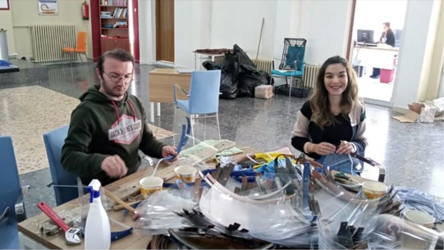Gençlik Merkezinde üretilen siperler geciktirilmeden sağlık çalışanlarına ve emniyet güçlerine dağıtılıyor.