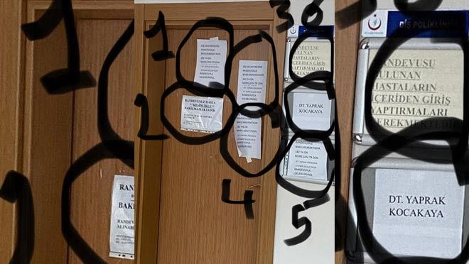 DOKTOR KAPISI ÜZERİNE 6 DEFA RANDEVU UYARI YAZISI ASILDI