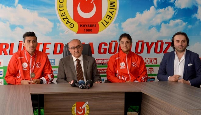 Kayseri Gazeteciler Cemiyeti toplantı salonunda gerçekleştirilen ziyarette konuşan Ali Doğan, şöyle dedi: ?Erciyes Üniversitesi Beden Eğitimi ve Spor Yüksekokulu´nu bitirdim. Kayseriliyim, bu spora 2003 yılında başladım. En son Meksika´da yapılan dünya şampiyonasında 120 ülke arasında Milli Marşımızı okutma başarısı elde ettim. Bu başarıyı elde ettiğim tarihin 19 Mayıs olması ve ´Atatürk´ü Anma Gençlik ve Spor Bayramı´ yıldönümünde gelmiş olması bizim için ayrı bir gurur kaynağıdır. Milyonlarca kilometre uzakta Milli Marşımızı okutmak çok güzel bir şey. Türk Milli Takımı olarak Meksika´dan 10 bronz 1 gümüş ve 1 altın madalya olmak üzere toplam 12 madalya ile döndük. Bu madalyalardan 3´ünü Kayserili sporcular elde etti. Ben Muay Thai ile babamın teşviki ile tanıştım. Sonra antrenörüm Göksel Cingöz sayesinde bu seviyelere geldim. Özellikle Muay Thai Federasyonu As Başkanı Halil Demir ve beni destekleyenlere son olarak da aileme çok teşekkür ediyorum.?