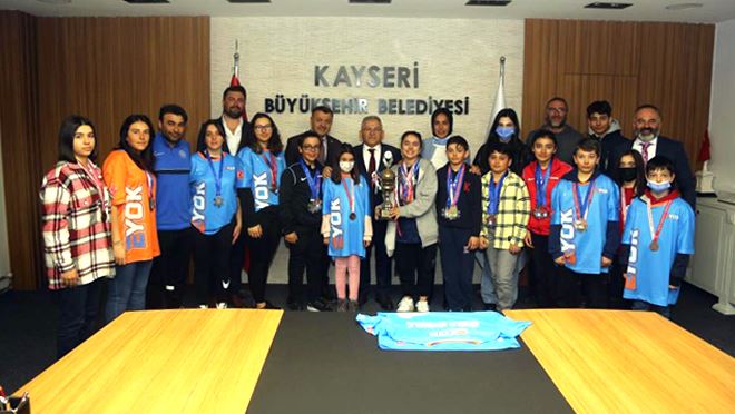 Şampiyonluk kupasını alarak, Başkan Büyükkılıç’a verdiği desteklerden dolayı teşekkür ziyaretinde bulunduklarını söyleyen sporcular, Kayseri’yi şampiyonada en iyi şekilde temsil etmeye çalıştıklarını söylediler.