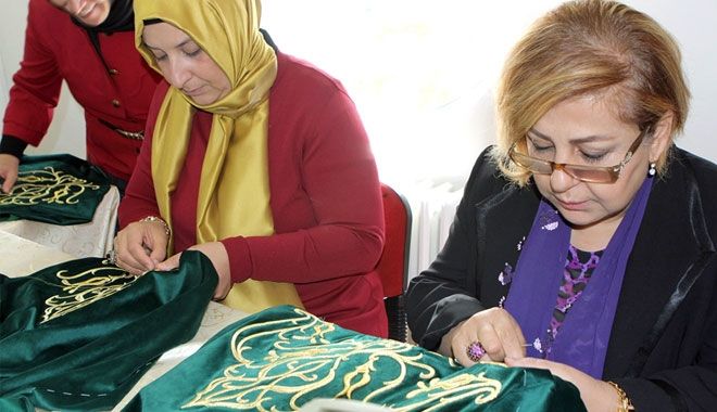 Kayseri´nin manevi mimarlarından olan Seyyid Burhaneddin Hz.´nin türbesinin yenilenmesi için Büyükşehir Belediyesi tarafından yapılan çalışmalar devam ediyor. Bu kapsamda KAYMEK´te sanduka örtüleri ve başlıklar yeniden dikiliyor. KAYMEK´te yapılan çalışmalara Vali Süleyman Kamçı´nın eşi Ayşe Kamçı ile Büyükşehir Belediye Başkanı Mustafa Çelik´in eşi İkbal Çelik de katıldı.
