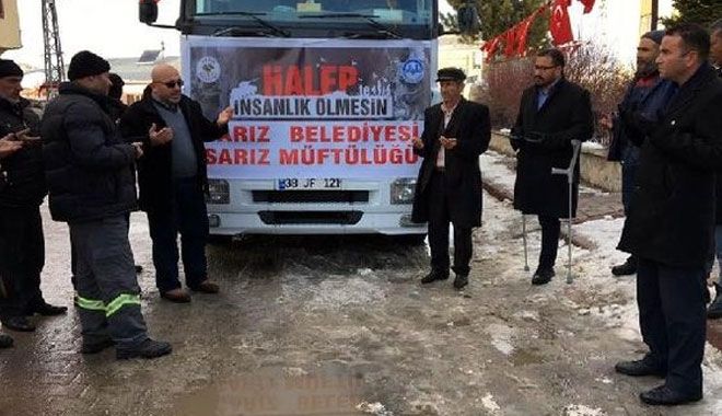Sarız Belediyesi ve Müftülük olarak Halep´i unutmadıklarını belirten Ömer Faruk Eroğlu,?Oradaki insanlarımız, savaş koşullarında çok mağdur oldular. Aç, susuz ve soğuk havalarda çok zor şartlar altında yaşıyorlar.Biz de içinde gıda ve kışlık yardım malzemeleri olan yardım tırımızı onlara katkımız olsun diye gönderiyoruz.