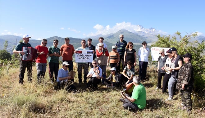 Kayseri´de 20 yıldır doğa yürüyüşü yapan arkadaş grubu, dinlendikleri her yerde şarkı ve türkülerini ut, keman ve akordiyon gibi müzik aletleriyle seslendirerek hem eğleniyor hem spor yapıyor.