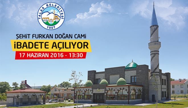 Talas Belediyesinin desteğiyle hayırsever Mustafa Argun tarafından Reşadiye Mahallesine yaptırılan Şehit Furkan Doğan Cami 17 Haziran Cuma günü ibadete açılıyor.