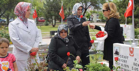En acı anneler gününü kutlayan şehit anneleri evlatlarını mezarlarını ziyaret etti.