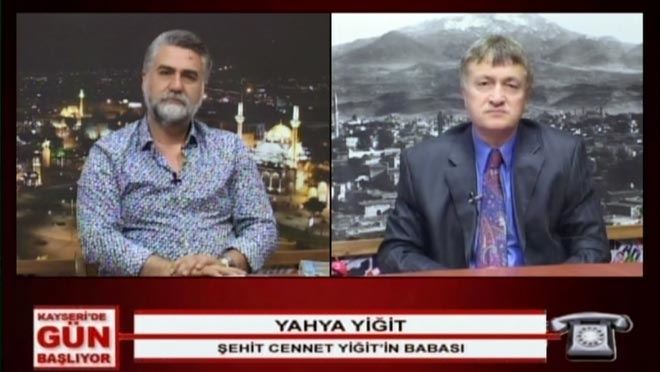 Kay Tv – Erciyes Tv ortak yayınında hafta içi her sabah ekranlara gelen ‘Kayseri’de Gün Başlıyor’ programına telefon bağlantısı ile katılıp Cumhuriyet Halk Partisi ile yaşadığı yargı sürecine dair değerlendirmelerde bulup, içini döken 15 Temmuz Şehidi Komiser Yardımcısı Cennet Yiğit’in babası Yahya Kemal Yiğit yaşananları ve yargı süreci ile ilgili bilgiler verip, üzüntüsünü dile getirdi. ”Bu olayın başlangıcı Çanakkale Şehitleri’ni anma töreninde yaşandı. Biliyorsunuz yerel seçimler arifesiydi. Seçimlere 13 gün vardı ve biz şehitlikte bulunuyorduk. CHP heyeti geldi. O zamana kadar benim şehidimin cenaze törenine gelmediler, taziyeme gelmediler hatta bir telefon açma zahmetinde bile bulunmadılar. O zamana kadar şehitlerle ilgili 20 - 25 program oldu. Hiç birine katılmadılar. Buna Chp il başkanı da dahil. Tabi bu seçim döneminde onları görünce bende tepki gösterdim. Onlarda bana karşılık verince olay büyüdü. Bu olaydan sonra bize dava açmışlar. Darp’tan, mala zarar vermeye her iddiadan beraat ettik. Lakin hakim hakaretten bizi 109 gün hapis cezasına çarptırdı ve onu da para cezasına çevirdi. Her duruşmada 15 Temmuzu yaşattılar bana. Hele son duruşmada savacı bey öyle bir iddianame hazırlamış ki evlere şenlik. Sanki biz CHP lileri asmışız, kesmişiz samimi söylüyorum beynimden vurulmuşa döndüm. Benim tepkim terör örgütleriyle yandaşlarıyla kol kola geziyorlar, ittifak yapıyorlar bizim zekamızla alay edip kamuoyuna biz ittifak yapmıyoruz diyorlar. Ben Kılıçdaroğlu’ na sayın demeye utanıyorum. Onun saygınlığı da bebek katili Abdulluh Öcalan’a sayın diyen Demirtaş kadardır.”