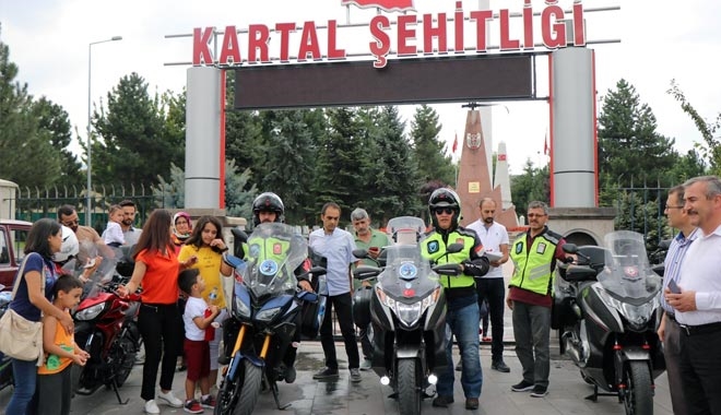 Kayserili motosikletçiler Mustafa Özdemir ve Yusuf Şentürk, Afrika gezisi öncesinde Kartal Şehitliği´ne gelerek, dua etti. Burada 2 motosikletçiyi, Gençlik ve Spor İl Müdürü Murat Eskici ile Türkiye Harp Malülü Gaziler Şehit Dul ve Yetimleri Derneği Kayseri Şube Başkanı Yılmaz Üçkan da yalnız bırakmadı. Motosikletçiler daha sonra edilen duanın ardından yola çıktı.