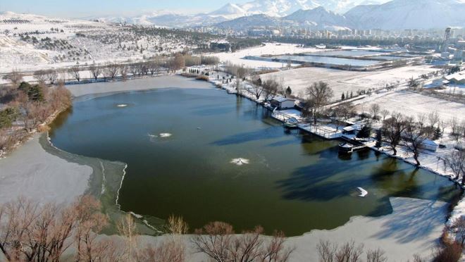 Kayseri'nin Kocasinan ilçesinde bulunan Şeker Gölü, yağan kar ile beraber güzel görüntüler oluşturdu.