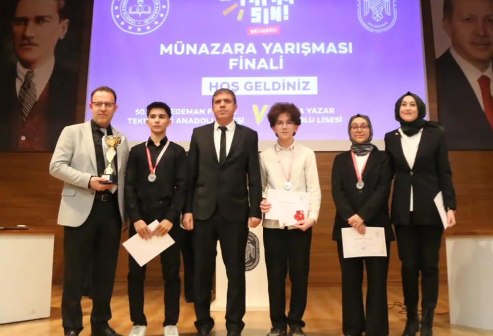 "Yapay zeka yararlı mı – zararlı mı?" konulu münazara yarışmasının şampiyonu ise 50. Yıl Dedeman Fen ve Teknoloji Anadolu İmam Hatip Lisesi oldu.