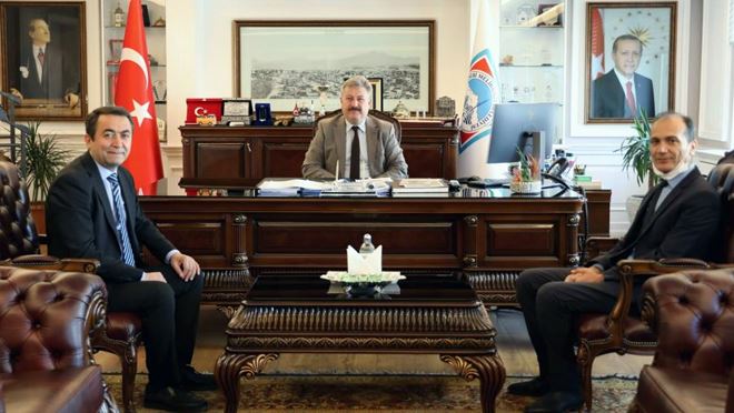 Kayseri Serbest Bölge Gümrük Müdürü Halil Gözeller, Melikgazi Belediye Başkanı Dr. Mustafa Palancıoğlu'nu ziyaret etti.