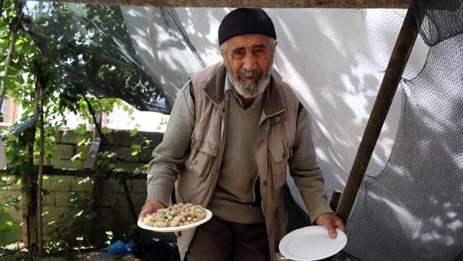 Kayseri’de yaşayan 83 yaşındaki Seyit Hasoğlu, evinin bahçesinden dışarı sarkan ağaçtaki dutları vatandaşlar yiyebilsin diye kaldırıma file gerdi. Filenin üzerine "Bu file yoldan geçenlerin dut yiyebilmesi için gerilmiştir. Afiyet olsun" yazılı not bırakan Hasoğlu, gönülleri fethetti.