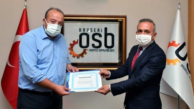 Sosyal Güvenlik Kurumu (SGK) Kayseri İl Müdürlüğü son beş yılda primlerini düzenli ödeyen ve herhangi bir şekilde borcu olmayan Kayseri Organize Sanayi Bölge Müdürlüğü’ne teşekkür belgesi verdi. SGK Başkanı İsmail Yılmaz’ın imzaladığı belge, SGK Kayseri İl Müdür Yardımcısı Mustafa Türkoğlu tarafından Kayseri OSB Genel Sekreteri Adil Özhan’a verildi.