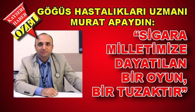 Göğüs Hastalıkları Uzmanı Murat Apaydın, 31 Mayıs Dünya Sigarayı Bırakma Günü´nde haber ekibimize bir değerlendirmede bulunarak sigara kullanımı konusunda Türk Milleti´nin oyuna getirildiğini iddia ederek ?Sigara bizim milletimize dayatılan bir oyun, bir tuzaktır. Bu oyunun mutlak suretle bozulması lazım? ifadesini kullanıp, sigara bırakmak isteyenlere de tavsiyelerde bulundu.
