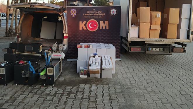 Kayseri İl Emniyet Müdürlüğü KOM Şube Müdürlüğü ekiplerince yapılan çalışmalarda çok miktarda tütün ve makaron ele geçirildi. Operasyonda şahıslar sigara basımı yaparken suçüstü yakalandı.