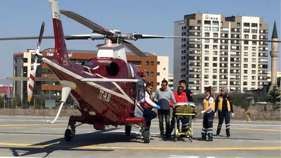 Kayseri'de silahla elinden yaralanan adam hava ambulansı ile şehir merkezine getirilerek tedavi altına alındı.