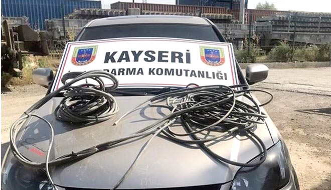 Kayseri´nin İncesu ilçesinde Devlet Demiryollarına ait sinyalziasyon kablosu çalan 2 kişi, Kayseri İl Jandarma Komutanlığı ekipleri tarafından yakalandı.