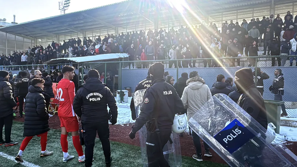 Karşılaşmada görev alan çok sayıda polis, sahaya girerek olayların büyümesini engelledi.