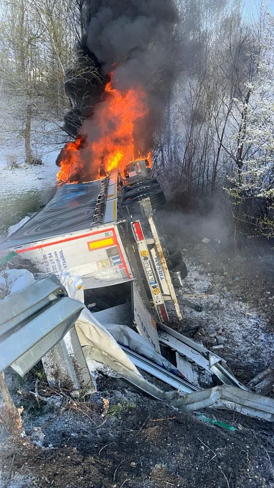 Kazanın ardından tırda çıkan yangını gören vatandaşlar, durumu 112 Acil Çağrı Merkezine bildirdi.
