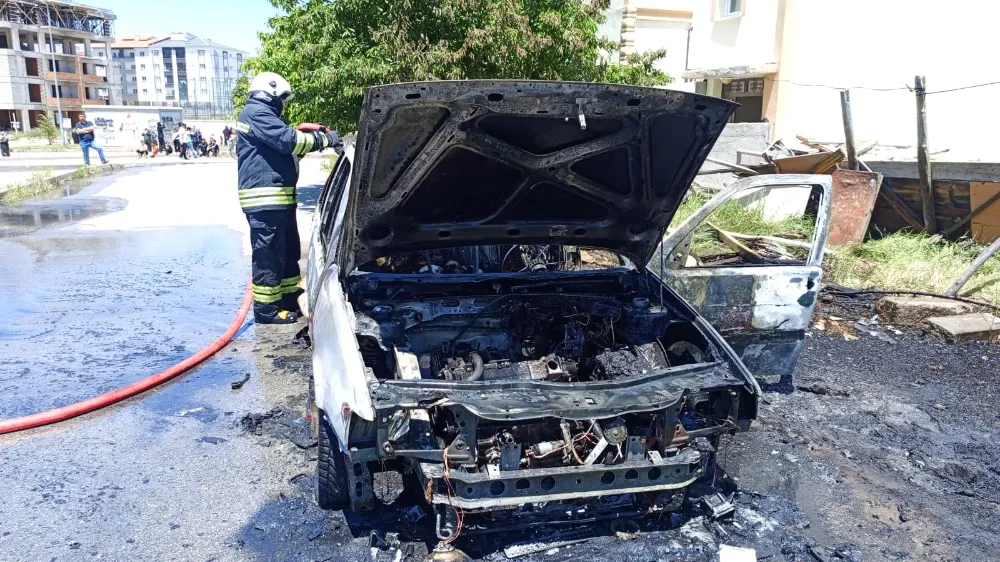 Ekiplerin müdahalesiyle söndürülen yangında araç kullanılamaz hale geldi.