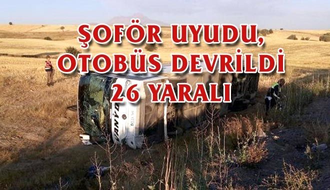 Kayseri´de meydana gelen trafik kazasında Van´a giden yolcu otobüsü, şoförün uyuyup direksiyon hakimiyetini kaybetmesi nedeniyle devrildi. Kazada 26 kişi yaralandı.