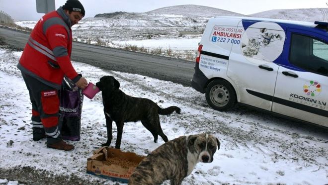 Kocasinan'dan soğuk havada sokak hayvanları için yemleme çalışması