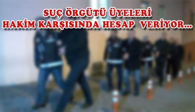 Hafta başında ?Organize Suç Örgütü´ üyesi oldukları iddiası ile göz altına alınan 7 kişi Emniyetteki işlemlerinin tamamlanmasının ardından, hakim karşısına çıkartılmak üzere adliyeye sevk edildiler.