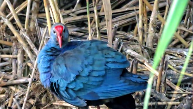 Saz Horozu nasıl bir hayvandır? Göçmen bir kuş türü olan saz horozu büyük ayakları, kırmızı kafa ve gagası ile parlak mavi tüyleriyle ayırt edici bir kuş türüdür. Yuvalarını yüksek sazların arasına yapmayı tercih eden saz horozları, otçul olmalarının yanı sıra küçük balık ve kurbağalarla da beslenirler.