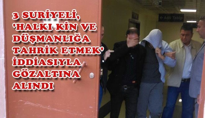 Kayseri´de polis tarafından yapılan operasyonda, 3 Suriyeli ´halkı kin ve düşmanlığa tahrik etmek veya aşağılamak´ iddiasıyla yakalanarak gözaltına alındı.