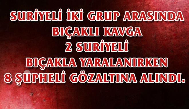 Kayseri´de aralarında önceden husumet bulunan Suriyeli iki grup arasında bıçaklı kavga çıktı. Kavgada 2 Suriyeli bıçakla yaralanırken 8 şüpheli gözaltına alındı.