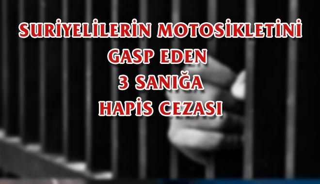 Kayseri´de Suriyelilerin motosikletlerini gasp ettikleri iddiasıyla ´birden fazla kişi ile yağma´ suçundan tutuklu yargılanan 3 sanığa 4 ila 5 yıl arasında hapis cezası verildi.