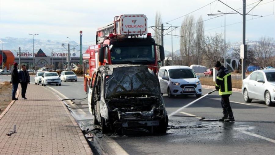 Kayseri'de içerisinde 4 kişinin bulunduğu otomobil, seyir halindeyken yandı. Sürücünün erken fark etmesiyle olayda yaralanan olmazken, otomobil küle döndü.
