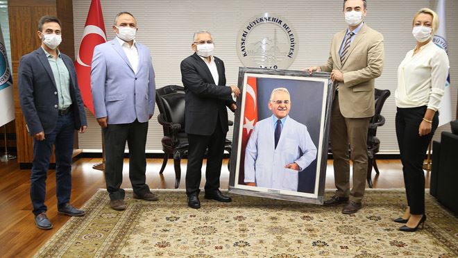 Kayseri Tabip Odası Başkanı Mehmet İlhan Şahin ve yönetimi, Büyükşehir Belediye Başkanı Dr. Memduh Büyükkılıç’ı ziyaret etti. Ziyarette, Başkan Büyükkılıç’a Kayseri’nin ilk hekim belediye başkanı olması dolayısıyla hekim önlüğüyle resmedilmiş bir yağlı boya tablosu hediye edildi.
