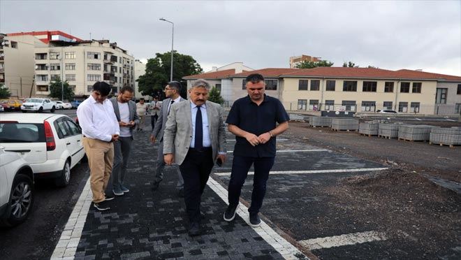 Melikgazi Belediye Başkanı Dr. Mustafa Palancıoğlu, Tacettin Veli Mahallesinde devam eden çevre düzenlemesi, yaya yolu ve otopark çalışmalarını yerinde inceledi.