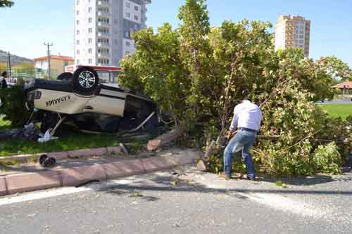 Edinilen bilgilere göre, Ahmet Gazi Ayhan bulvarında yaşanan olayda, direksiyon hakimiyetini kaybeden 38 plakalı otomobil sürücüsü G.S. (40) takla atarak önce refüje çıktı, ardından da refüjde bulunan iki ağacı yerinden sökerek durabildi. Kaza sonrası yaralanan otomobil sürücüsü G.S. olay yerine gelen 112 acil servis ekipleri tarafından Eğitim ve Araştırma Hastanesi Acil Servisine kaldırılarak tedavi altına alındı. Kazanın ardından yerinden sökülen ağaçlar belediye ekiplerince hızarla kesilerek kamyona yüklendi.