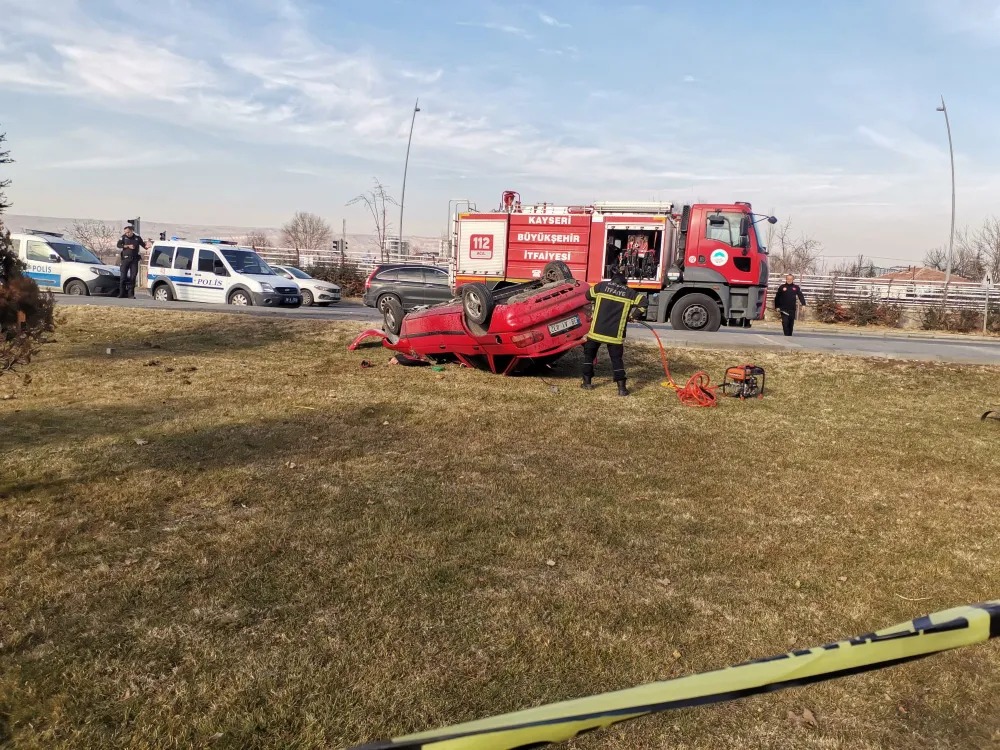 Edinilen bilgiye göre, ilçeye bağlı Turgutreis Mahallesi Bekir Yıldız Bulvarı üzerinde 38 AY 432 plakalı otomobil, sürücüsünün direksiyon hakimiyetini kaybetmesi sonucu yoldan çıkarak parka savruldu. Takla atan otomobilde yangın çıkarken, çevredekilerin ihbarıyla olay yerine polis, sağlık ve itfaiye ekipleri sevk edildi. Polis çevrede güvenlik önlemi alırken, ekiplerce otomobilden çıkarılan 2 kişi sağlık ekipleri tarafından ambulansla Kayseri Şehir Hastanesi'ne kaldırılarak tedavi altına alındı. İtfaiye ekiplerince otomobilde çıka n yangın söndürülürken, incelemelerin tamamlanmasıyla otomobil bulunduğu yerden kaldırıldı.