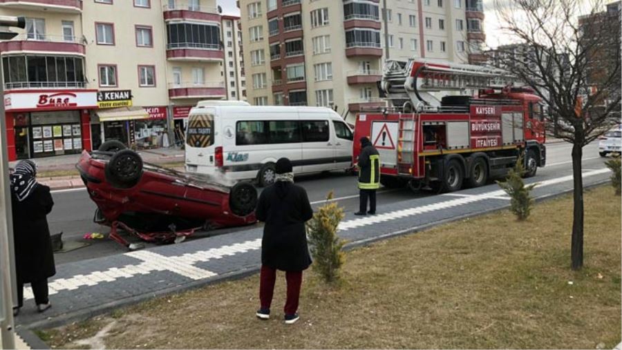 Kayseri’de meydana gelen trafik kazası sonucu takla atan otomobilin sürücüsü, kazayı hafif yaralı olarak atlattı.