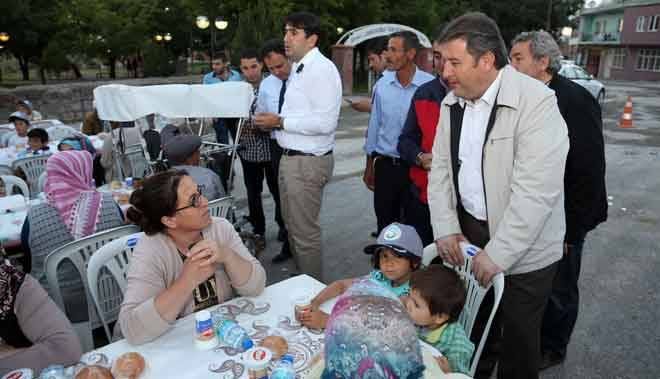 Mahalle meydanına kurulan 400 kişilik sofraya Talas Belediye Başkanı Mustafa Palancıoğlu, eşi Emel Palancıoğlu ve çocuklarıyla birlikte geldi. İftara Başkan Palancıoğlu´nun yanı sıra, AK Parti İlçe Başkanı Ragıp Dost, meclis üyeleri, muhtar Mehmet Vural ve kadın-erkek, çoluk çocuk çok sayıda mahalleli katıldı.