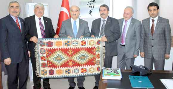 Konuşmaların sonunda Talas Avşar Türkmenleri Derneği Başkanı Zeki Gökdemir Başkan Rifat Yıldırım’a, Sarız el dokuması kilim hediye etti.