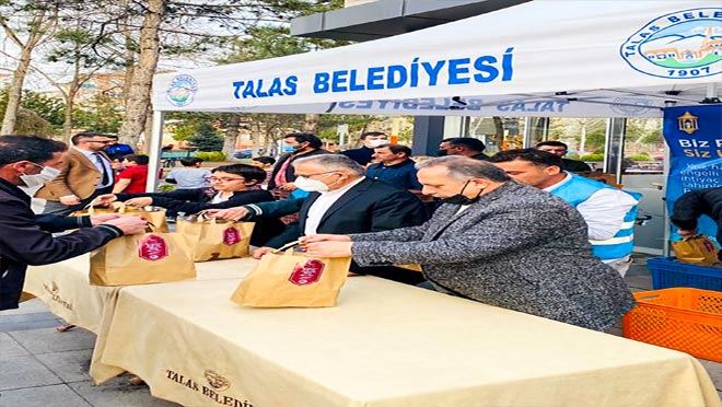 Ramazan ayı ile birlikte başlayan organizasyonda Büyükşehir Belediye Başkanı Memduh Büyükkılıç ve Talas Belediye Başkanı Mustafa Yalçın, ihtiyaç sahiplerine ulaştırılmak üzere hazırlanan yemeklerin dağıtımına eşlik etti.