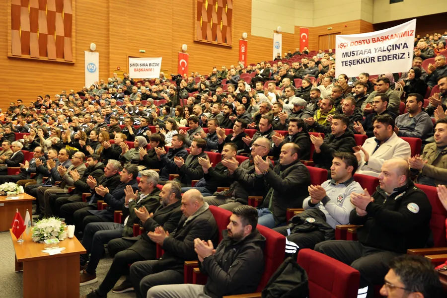 Başkan yardımcıları ve birim müdürlerinin de katıldığı programda Başkan Yalçın, salona belediye çalışanlarının alkışları ve sloganları eşliğinde girdi. Salonda birlik, beraberlik ve dayanışma mesajları ön plana çıktı.