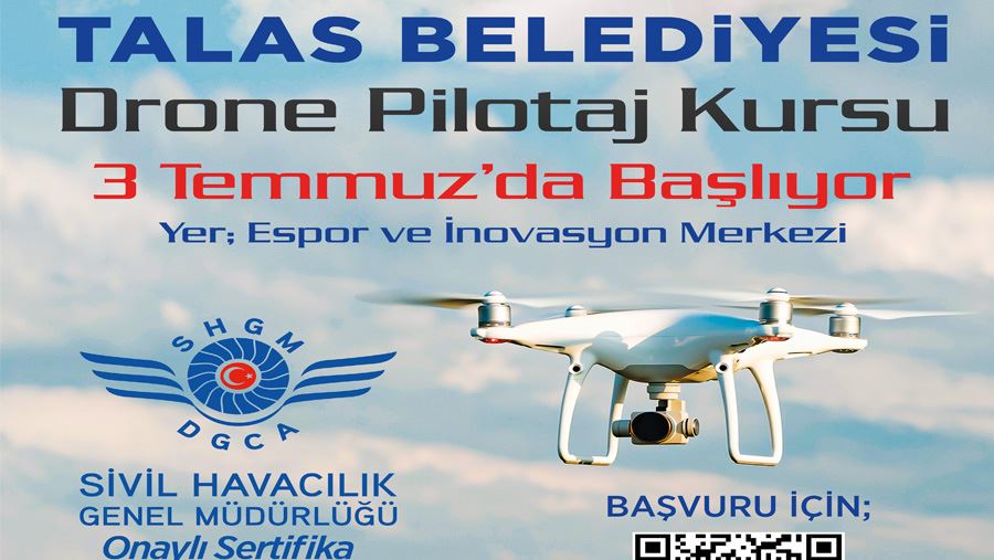 Talas Belediyesi, 8. sınıf ile lise öğrencilerine yönelik Sivil Havacılık Genel Müdürlüğünden onaylı sertifikalı drone pilotaj kursu düzenliyor.